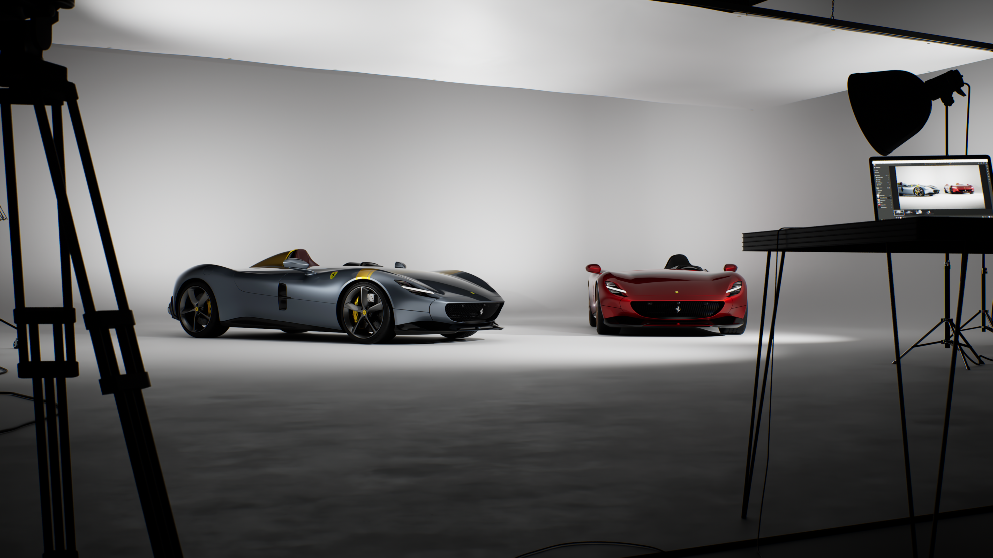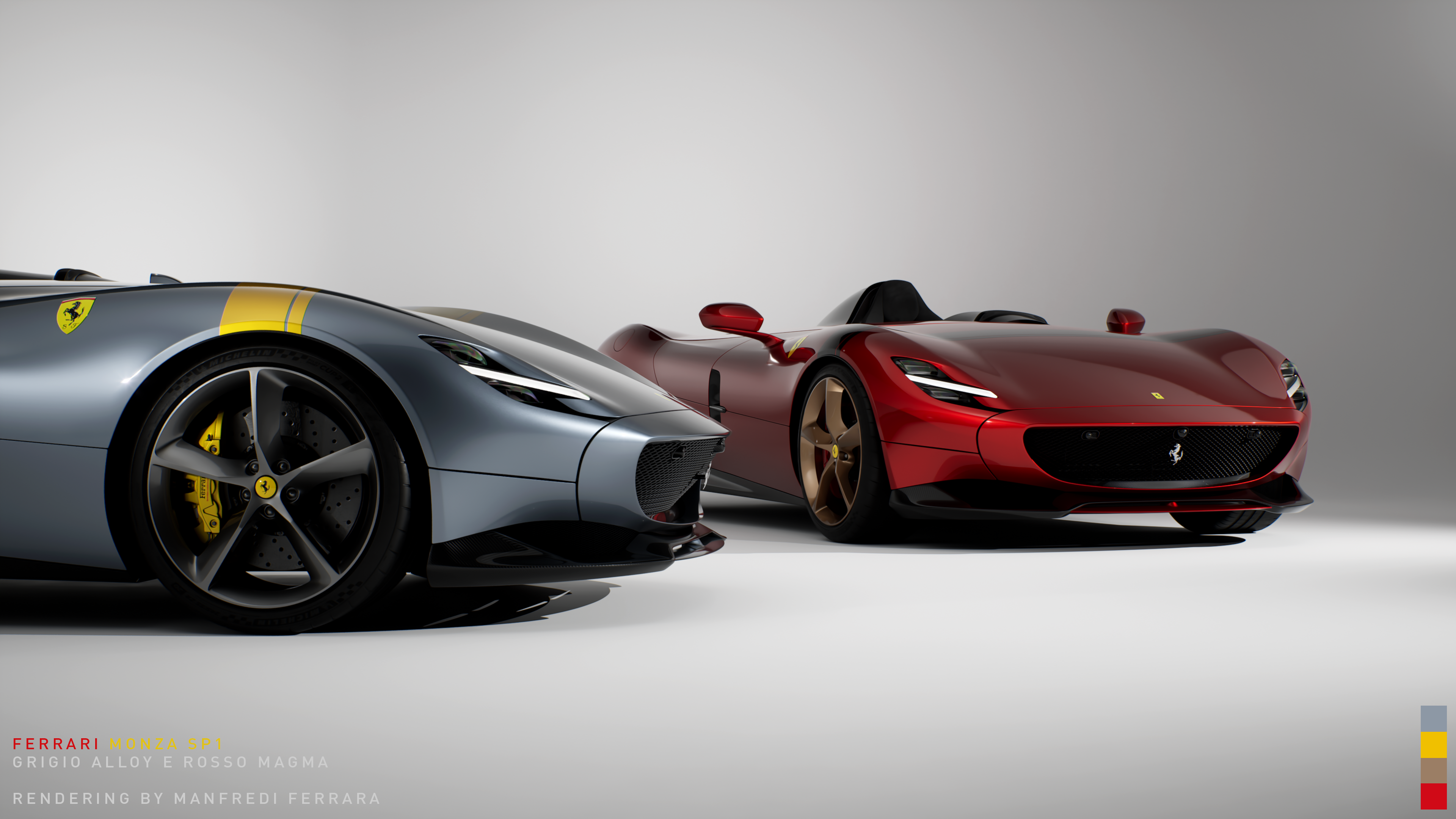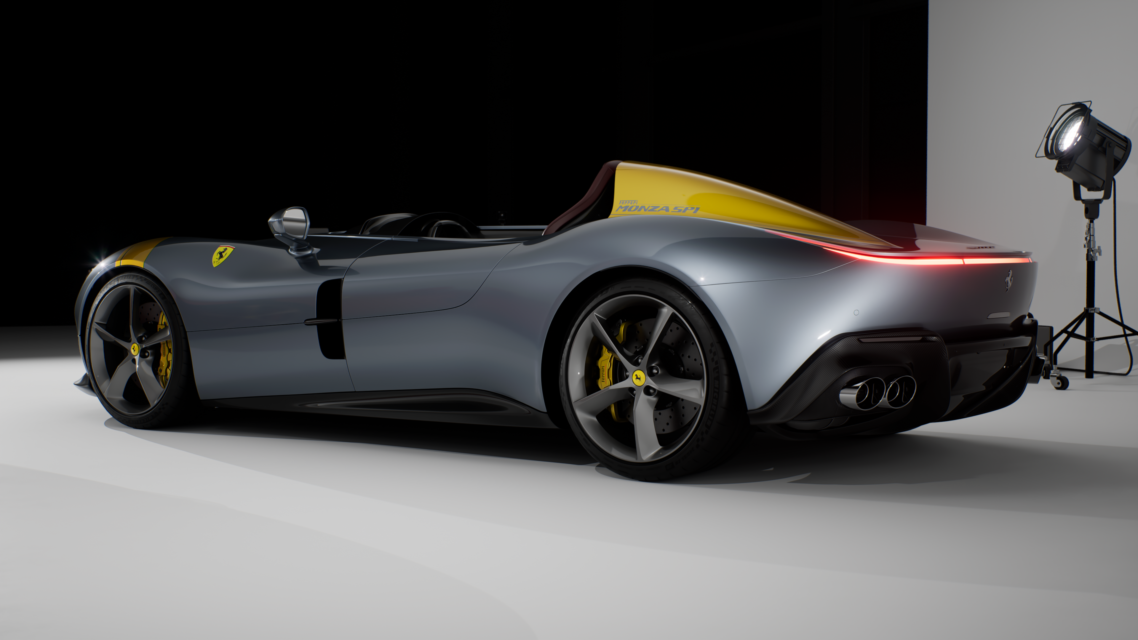 In this project I wanted to represent two Monza SP1s in my favorite colors of Grigio Alloy and Rosso Magma inside a photography studio using Unreal Engine 5 path tracing.